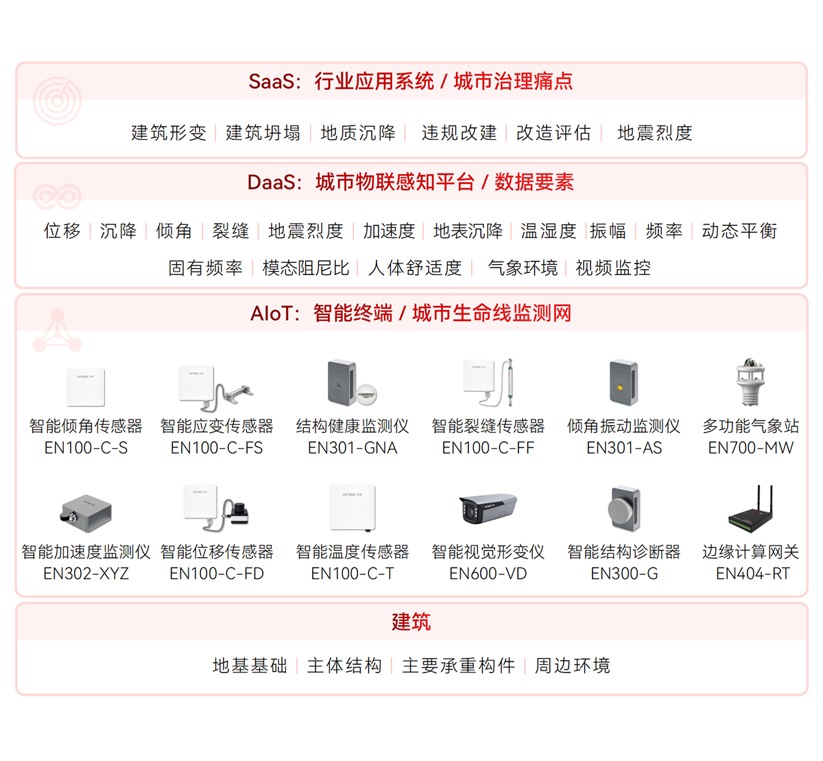 實(shí)時(shí)監(jiān)控建筑結(jié)構(gòu)健康狀態(tài),通過(guò)位移、沉降、傾斜、溫濕度、裂縫和動(dòng)態(tài)平衡、自振頻率的數(shù)據(jù)收集分析,對(duì)潛在災(zāi)害進(jìn)行提前預(yù)警,對(duì)突發(fā)事件應(yīng)急報(bào)警,為結(jié)構(gòu)坍塌監(jiān)測(cè)預(yù)警分析和滑坡監(jiān)測(cè)預(yù)警分析提供數(shù)據(jù)支撐,實(shí)現(xiàn)對(duì)建筑健康狀態(tài)的實(shí)時(shí)評(píng)估。
